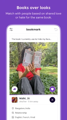 On Bookmark, your face remains hidden until you match and exchange 10 messages with another reader. Enjoy the safe and refreshingly fun experience of connecting with someone on books before looks! :) We hope you relish this welcome break from the conventional dating apps of the world.