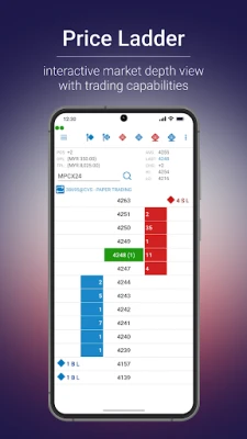 Price Ladder offers a real-time market depth view that highlights your relevant portfolio data in an interactive fashion.
